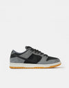 The Nike SB Dunk Low 'Dark Smoke Grey' is a sleek and modern take on the classic skateboarding silhouette. Designed for both style and performance, this sneaker features a premium dark smoke grey suede upper, giving it a refined and understated look. Complementing the suede is a black leather Swoosh on the sides, adding a touch of contrast and texture.